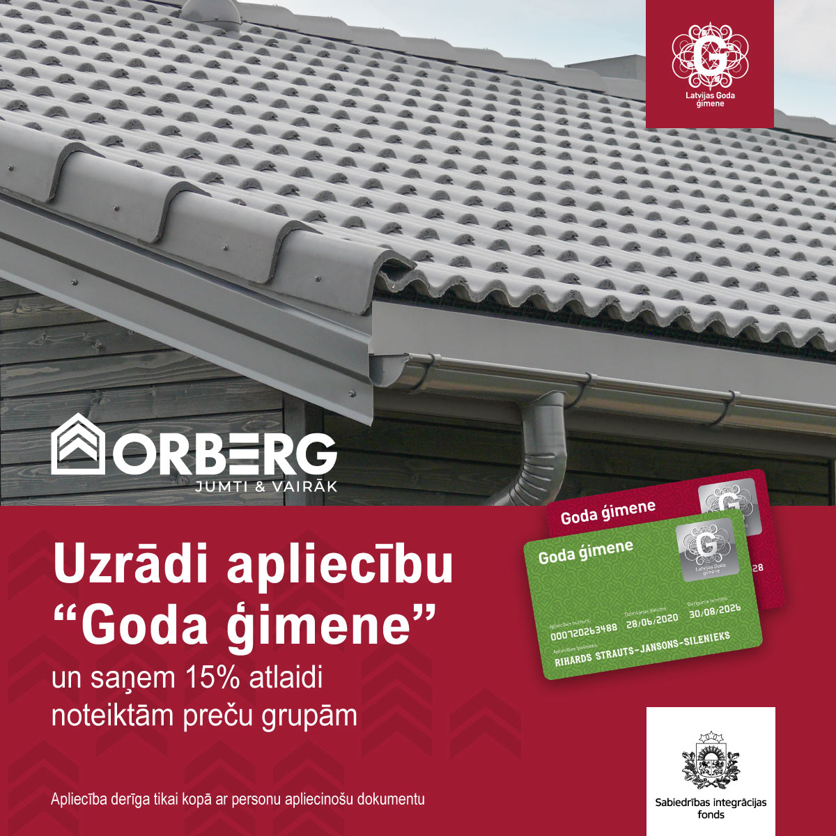 ĢIMENEI DRAUDZĪGS PIEDĀVĀJUMS GODA ĢIMENES APLIECĪBA Apliecības turētājiem sniedzam atlaidi no standarta cenas šādiem produktiem: ATLAIDE 0 % komplektējošajiem jumta aksesuāriem,ventilācijas izvadiem,jumta drošības elementiem,noteksistēmām,celtniecības plēvēm,dūmvadiem Atlaides nesummējas ar citām piemērotajām atlaidēm