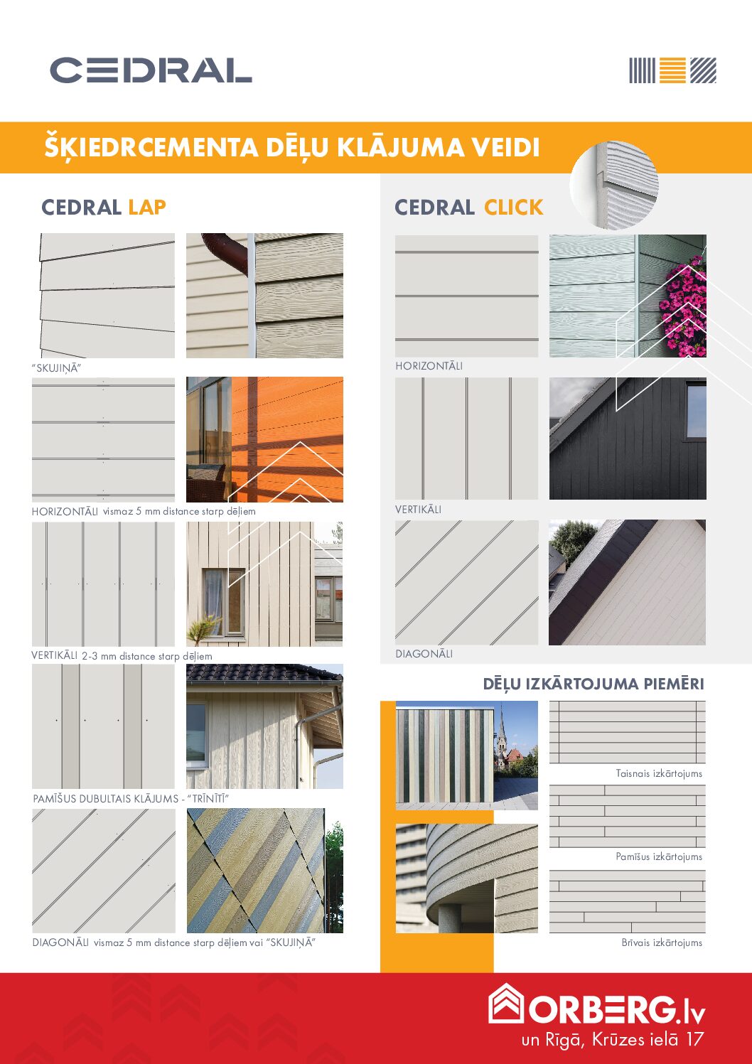 CEDRAL fasādes apdares dēļi lieliski sader arī ar citiem celtniecības materiāliem un tos var izmantot ne tikai fasādēm, bet arī vēja kastēm, logu un durvju apdarei, interjeram un citur. Daudzveidīgās šķiedrcementa dēļu izmantošanas iespējas ļauj radīt unikālus un radošus risinājumus.