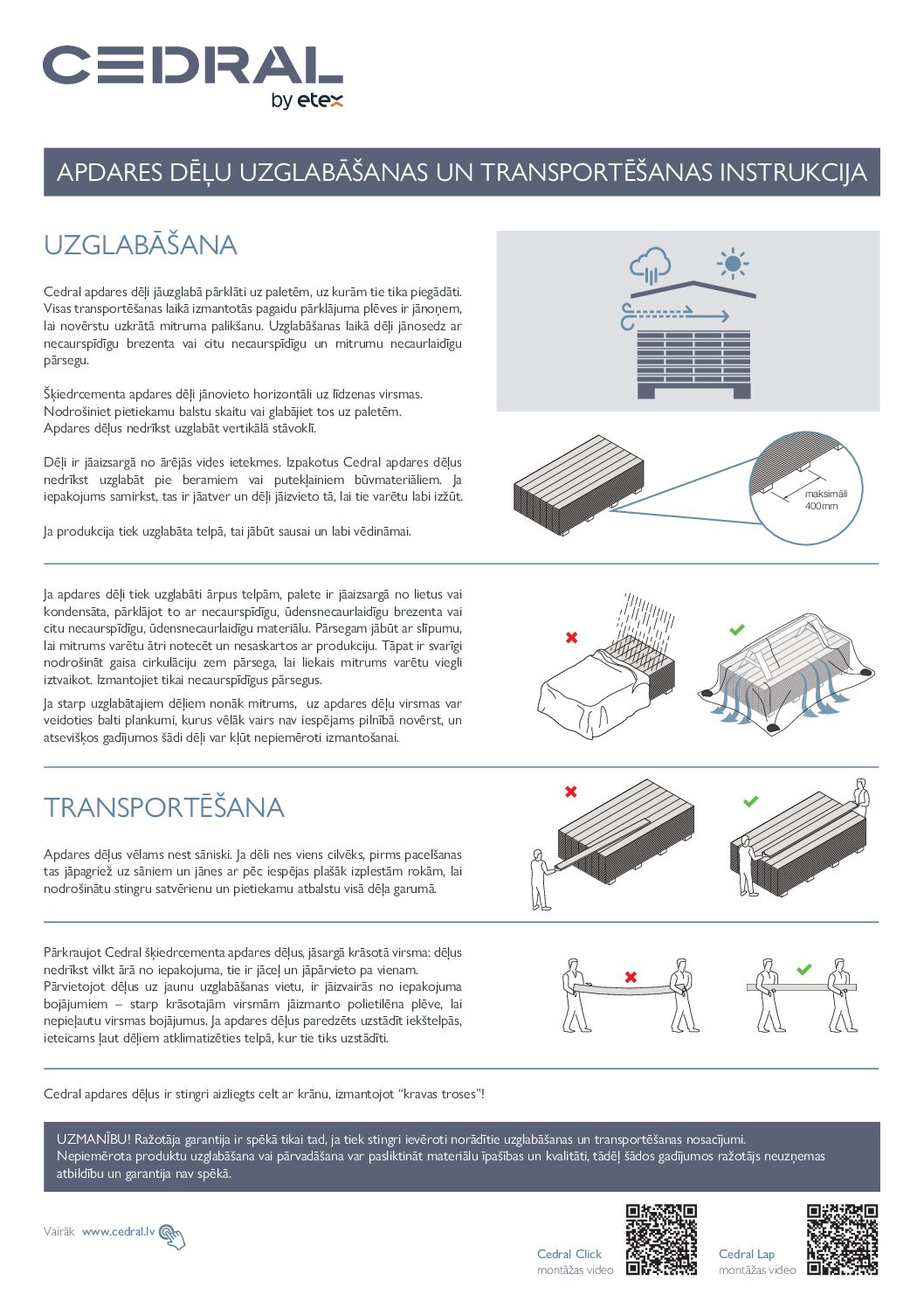 CEDRAL nodrošina 15 gadu garantiju, bet materiāla kalpošanas laiks ir vismaz 50 gadi.