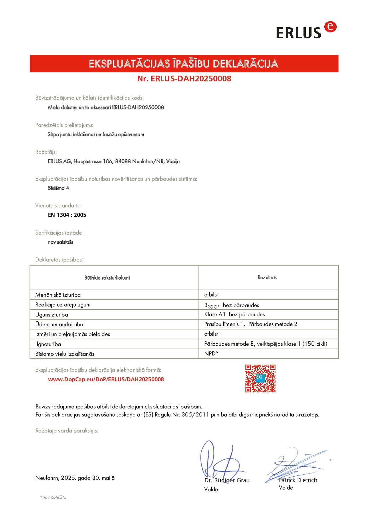 ERLUS Level RS māla dakstiņiem tiek piešķirta 30 gadu garantija, kas apliecina to ilgmūžību!