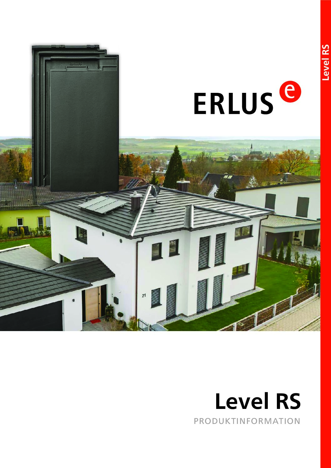ERLUS LEVEL RS ir īpaši izstrādāti māla dakstiņi lēzeniem jumtiem ar slīpumu sākot no 10°, apvienojot mūsdienīgu dizainu ar augstu tehnisko izturību. LEVEL RS dakstiņu gludā virsma un izteiktās līnijas veido vizuāli pievilcīgu un harmonisku jumta virsmu, kas lieliski sader ar moderno arhitektūru.