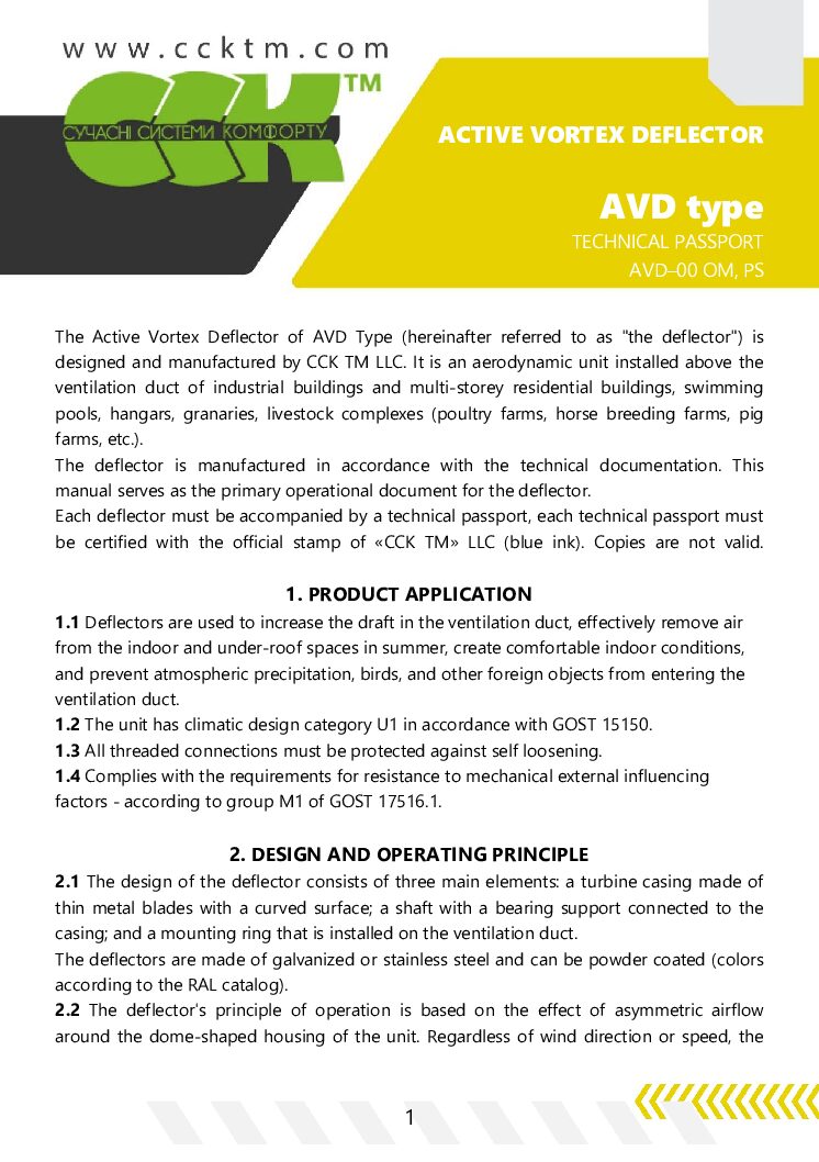 - AVD turbo deflektors paredzēts montāžai uz ventilācijas caurulēm, gan slīpiem, gan plakaniem jumtiem. Uz slīpa jumta to iesaka uzstādīt augstākajā punktā, savukārt renovācijas darbos – arī virs ventilācijas kanāla izplūdes atveres.
