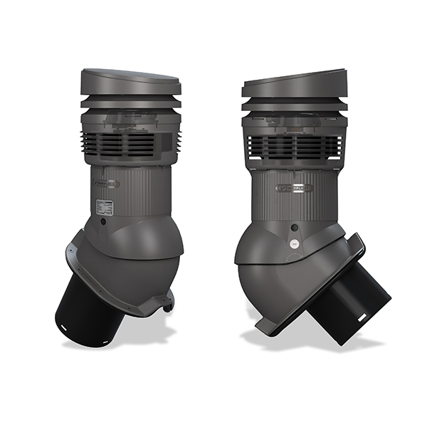 Ventilācijas izvads E31E, D150, ar elektrisko ventilatoru Eco piemērots: metāla dakstiņu jumtiem, bezazbesta šīfera jumtiem, trapecveida jumtiem.